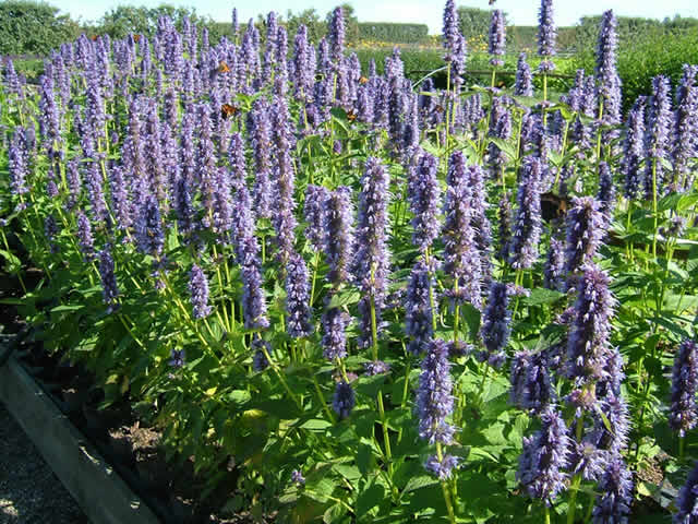 Agastache 'Blackadder' is de meest winterharde en langst levende anijsplant.Bloeit met donkere aren van blauwpaarse bloemen, is iets donkerder dan Agastache 'Blue Fortune'