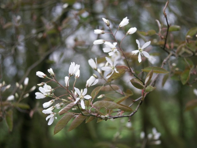 Amelanchier lamarckii is een kleine bladverliezende boom uit de familie van de roosachtigen ( rosaceae ); met zijde-zachte bladeren die in het begin bronskleurig zijn en later donkergroen. Het blad is ovaal tot breed elliptisch met een licht grijsgroene onderkant, in de herfst krijgt het een prachtige oranje tot donkerrode verkleuring. Bloeit met witte bloempjes in trossen van acht (april mei ), later volgen eetbare bessen.