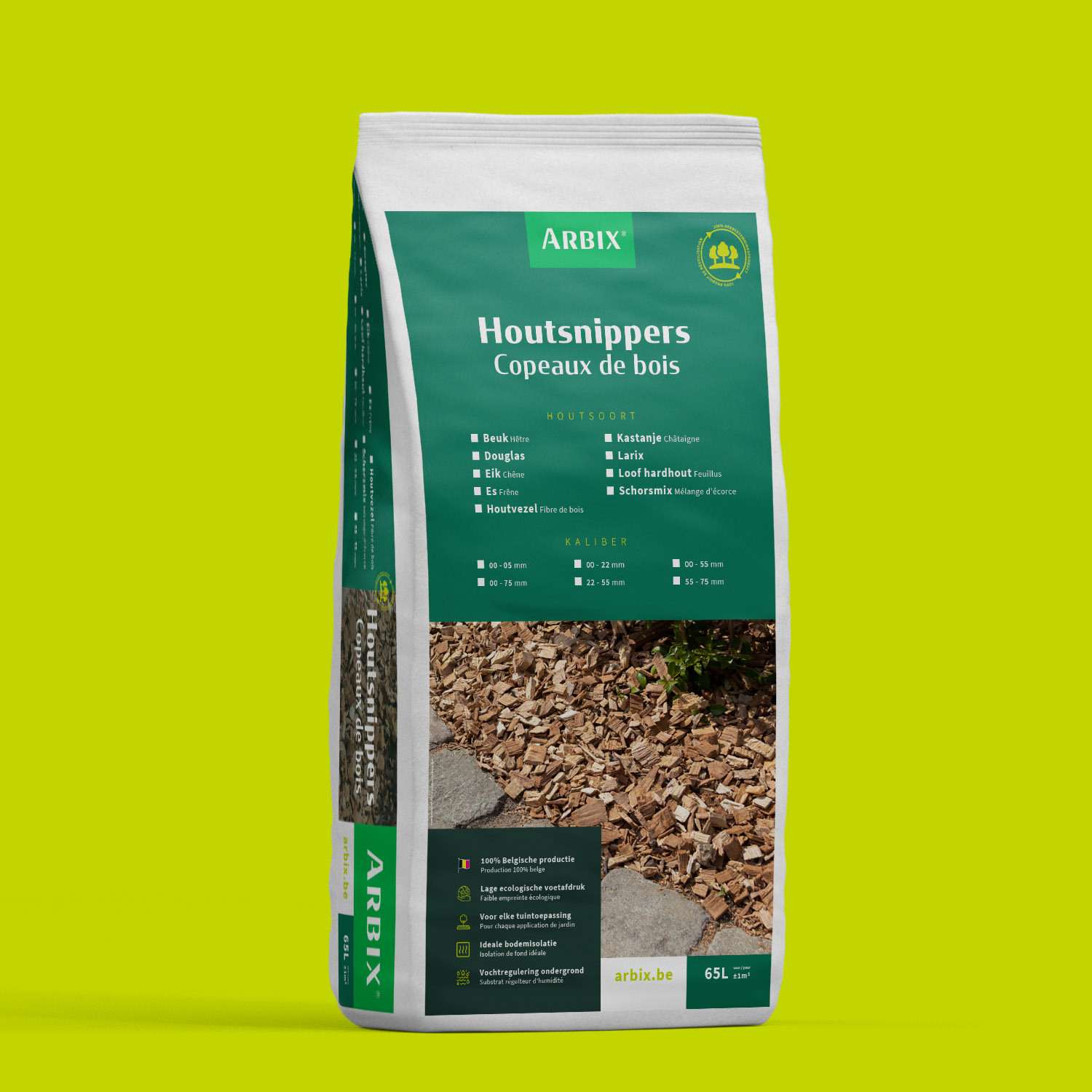 Houtsnipper van hoge kwaliteit met lange levensduur. Eiken houtsnippers zijn bruikbaar in de volledige groenzone en hebben een zeer trage vertering.