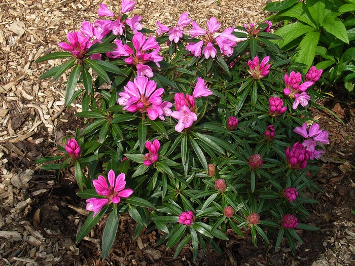 Rhododendron (AP) 'Graziella' heeft mooie smalle bladeren. De roze geurige bloemen verschijnen in mei. Het is een gezonde, breed groeiende cultivar en blijft lager dan de soort. Rhododendrons houden van een plek in de halfschaduw en van zure grond.