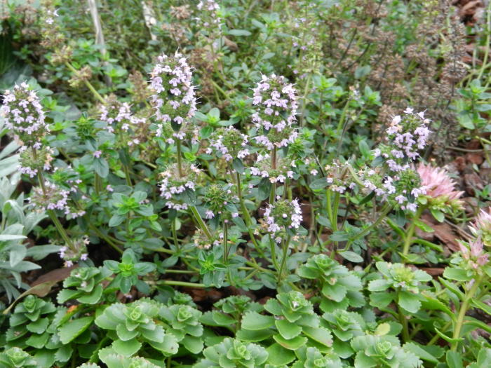 Thymus serpyllum var. coccineus is een kruipend laagblijvend heestertje met behaarde bloemstengels, de bloempjes zijn karmijnroze bolle schijnaren.